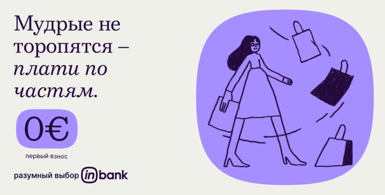 - Способы оплаты «Заплати позже» от Inbank не являются рассрочкой, а представляют собой формы оплаты без кредита — они не влияют на ваш кредитный рейтинг.