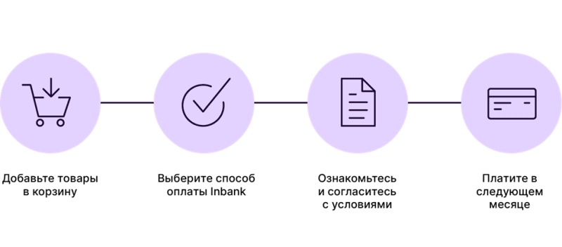 - Способы оплаты «Заплати позже» от Inbank не являются рассрочкой, а представляют собой формы оплаты без кредита — они не влияют на ваш кредитный рейтинг.